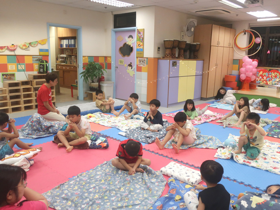 烹調。隨後,他們就分組洗碗、清潔課室及預備軟墊睡覺。